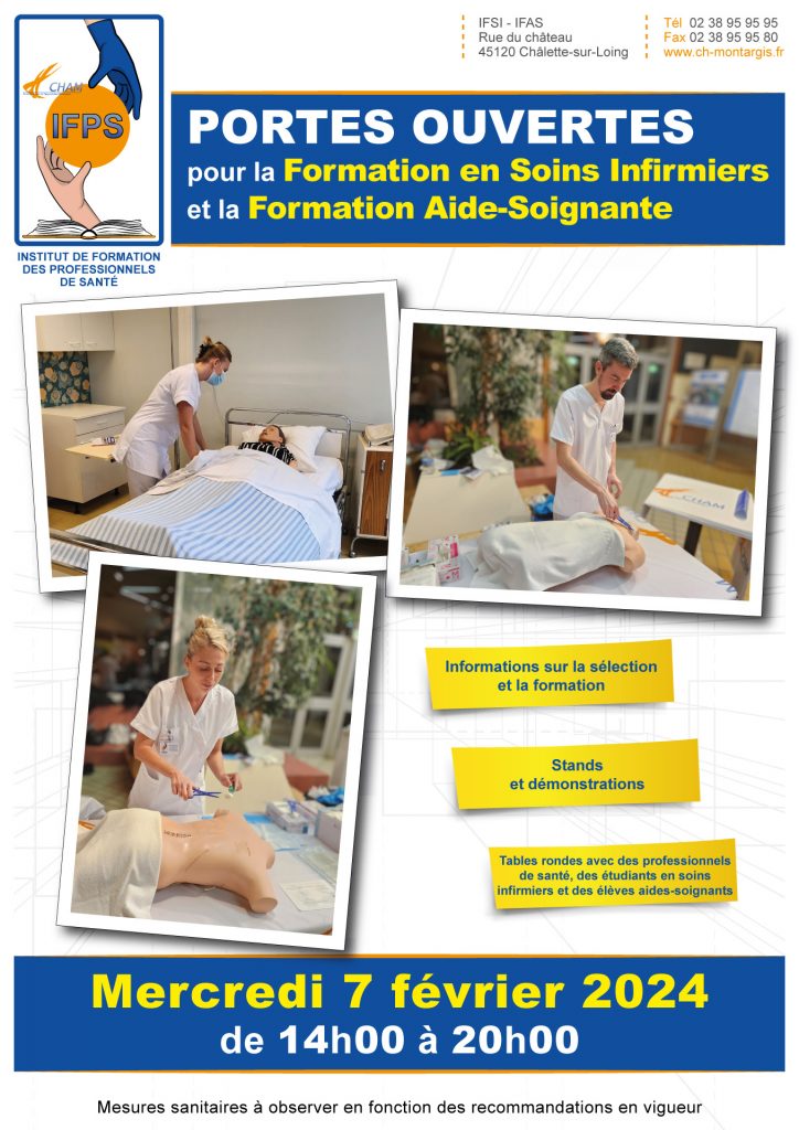 Les portes ouvertes de l’Institut de Formation des Professionnels de Santé (IFPS) du Centre Hospitalier de l’Agglomération Montargoise auront lieu le mercredi 7 février 2024, de 14h à 20h.