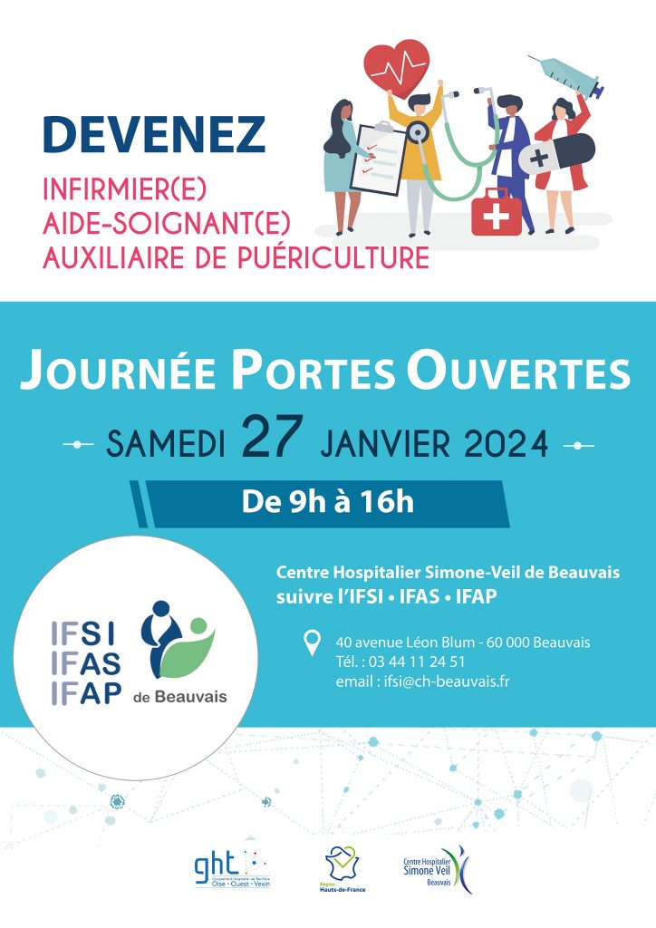 Les métiers d’infimier.e, aide-soignant.e ou auxiliaire de puériculture vous tentent ? Le Centre Hospitalier Simone-Veil de Beauvais ouvre les portes de son IFSI IFAS et IFAP le samedi 27 janvier de 9h à 16h.