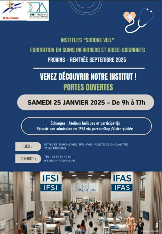 Vous souhaitez intégrer une formation en soins infirmiers et aides-soignants à la rentrée 2025 ? Le Centre Hospitalier de Provins organise une porte ouverte pour ses instituts “Simone Veil”.