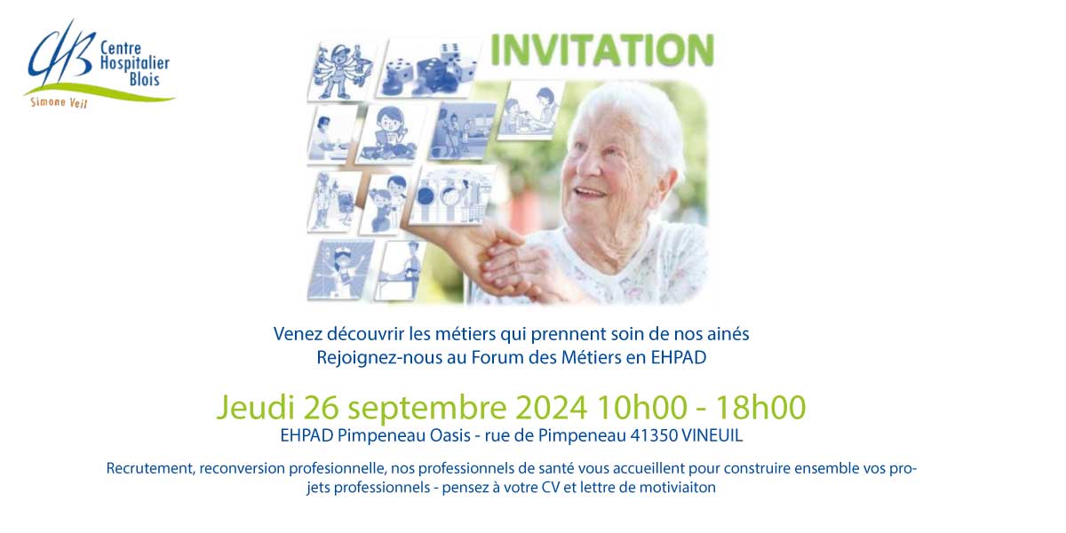 EHPAD Pimpeneau Oasis rue de Pimpeneau, VINEUILVenez rencontrer nos professionnels de santé du pôle Grand Age au CH Simone Veil de Blois le 26 septembre 2024 de 10h00 à 18h00 !